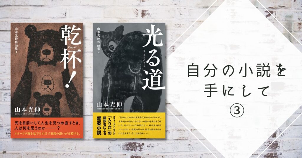 山本光伸作品集4『諾さん』刊行のお知らせ さて、今回はどんな本を紹介しましょうか。皆さんのご意見を参考にできたらとも思います。自分が書き上げた書籍はどんなものだろうかと思い、今回初めて整理したわけですが、まず第一にびっくりしたのはその分量でした。よくぞここまでという思いがする一方で、僕はこの年になってようやく本当の仕事に巡り合えたのだという気もしています。どういう結果になるか、今から大変に楽しみです。 -